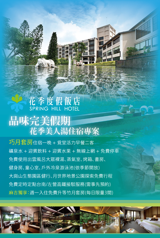 只要5588元,即可享有【高雄-花季度假飯店】品味完美假期:花季美人湯住宿專案〈含巧月套房住宿一晚 + 覓堂活力早餐二客 + 礦泉水 + 迎賓飲料 + 迎賓水果 + 無線上網 + 免費停車 + 免費使用出雲風呂大眾裸湯、蒸氣室、烤箱、書房、健身房、童心室、戶外冷泉游泳池(依季節開放) + 大崗山生態園區健行、月世界地景公園探索免費行程 + 免費定時定點台南/左營高鐵接駁服務(需事先預約)〉麻吉獨享:週一入住免費升等竹月套房(每日限量3間)