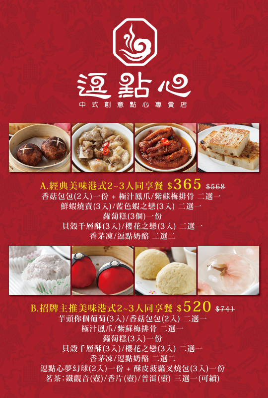 電視名廚溫國智帶領團隊打造!【逗點心中式創意點心專賣店】精心推出的港式優惠,大讚好好味吶!嚴選高檔食材,爽度破表!鄰近捷運公館站,交通相當便利!
