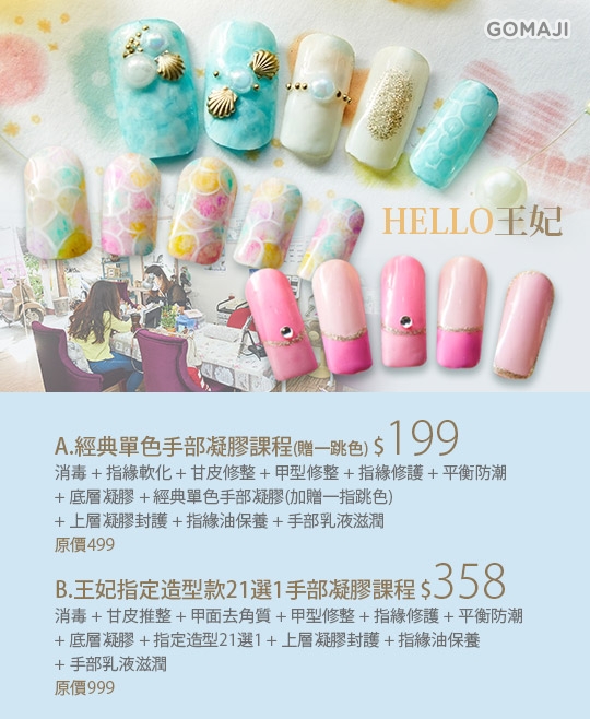 給妳一場"玩美"饗宴!【HELLO王妃】細心修護指尖、製作凝膠美甲,以時尚妝點雙手,王妃指定造型款21款可選擇,絕對讓人目不轉睛!